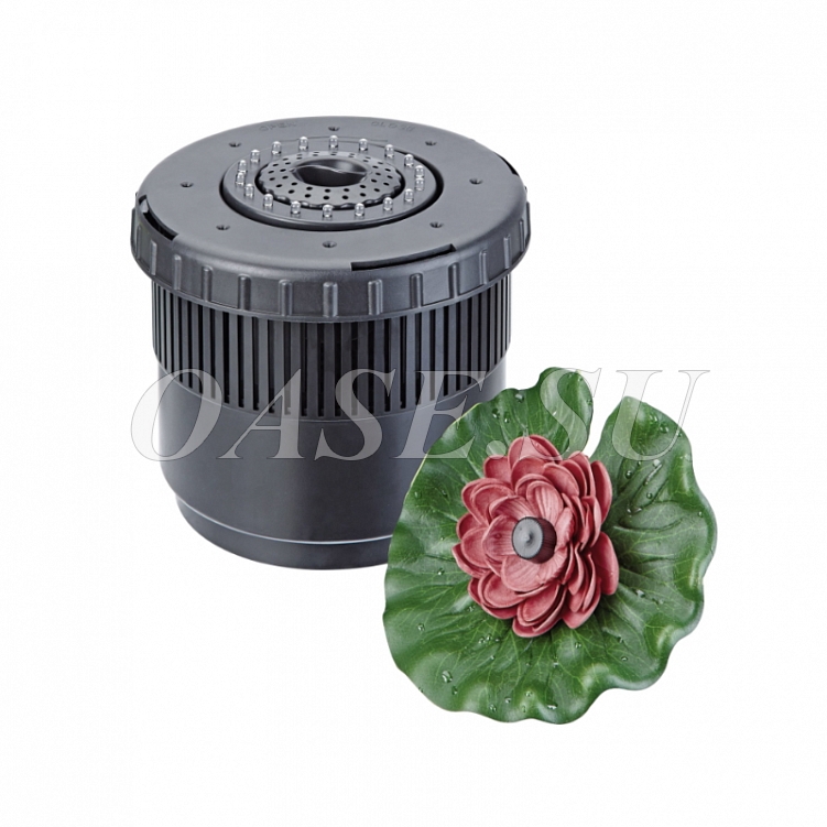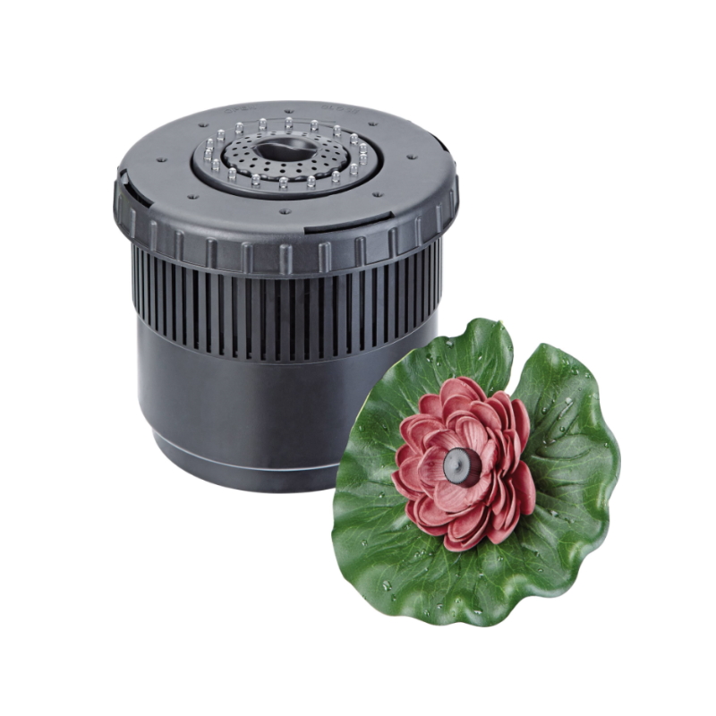 Погружной аэратор с подсветкой для насыщения воды кислородом, воздухозаборник данного аэратора задекорирован под плавающую лилию.