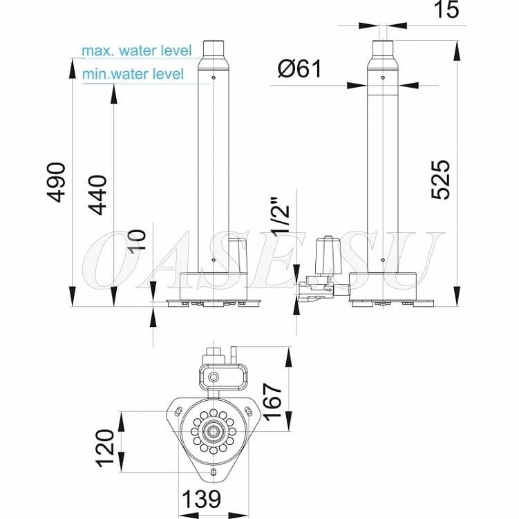 - Минимальная глубина погружения 440 мм