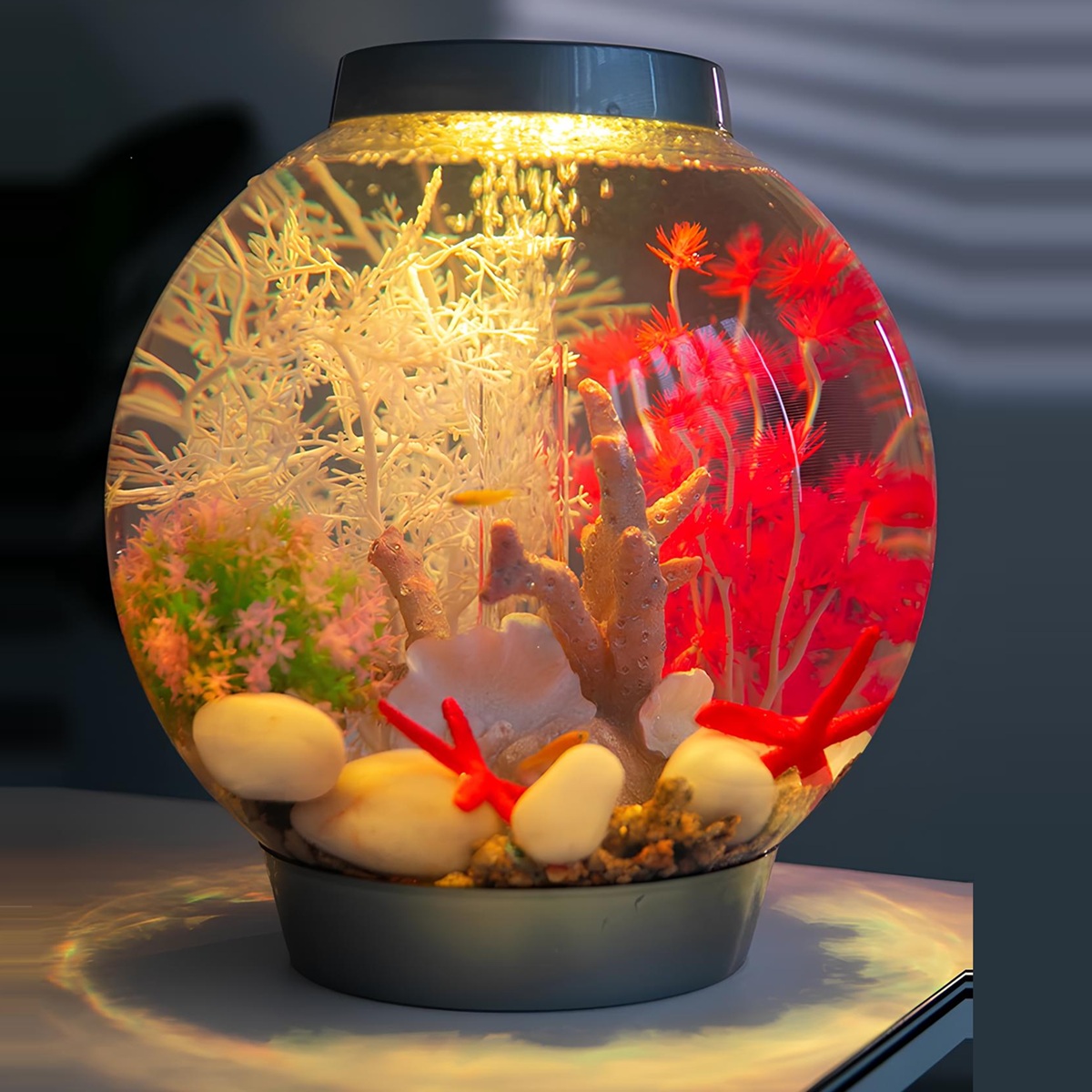 - Сферический аквариум со светодиодной цвето-меняющейся подсветкой