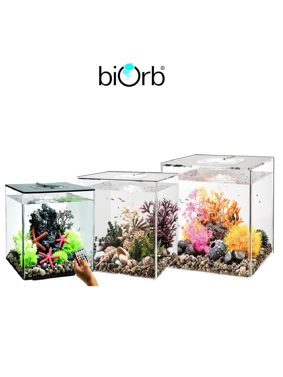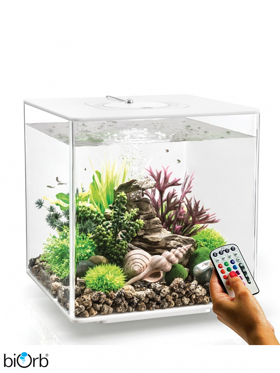 Серия biOrb CUBE это классические аквариумы квадратной формы с цветной светодиодной подсветкой (16 цветов) и пультом дистанционного управления.