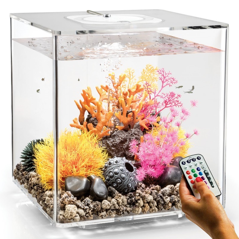Серия biOrb CUBE это классические аквариумы квадратной формы с цветной светодиодной подсветкой (16 цветов) и пультом дистанционного управления.