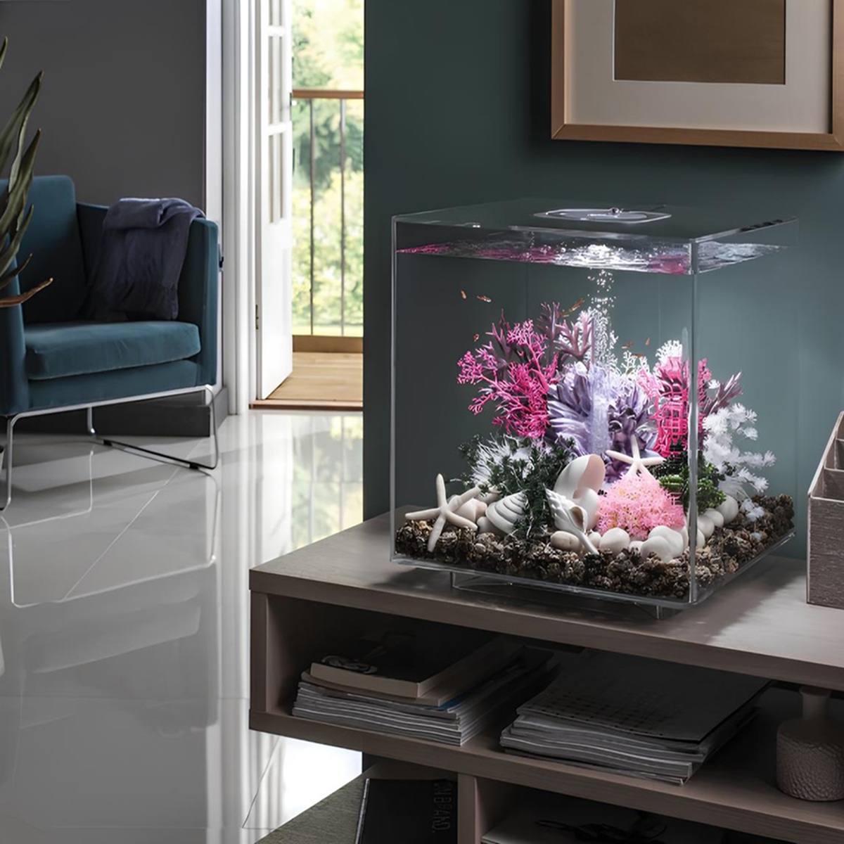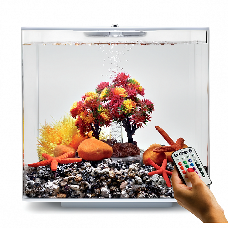 Серия biOrb CUBE это классические аквариумы квадратной формы с цветной светодиодной подсветкой (16 цветов) и пультом дистанционного управления.