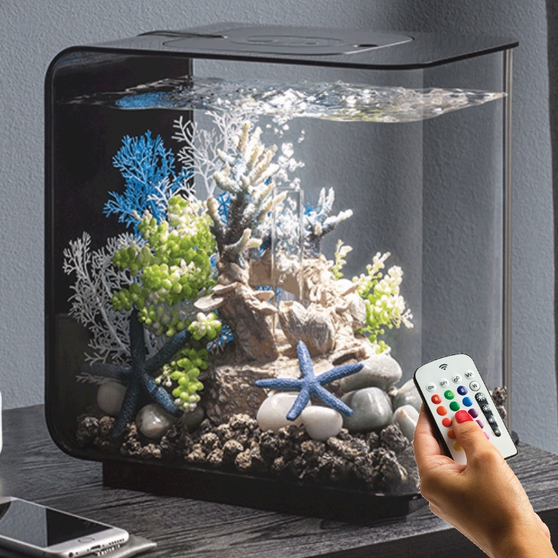 - Прямоугольный аквариум со светодиодной цвето-меняющейся подсветкой