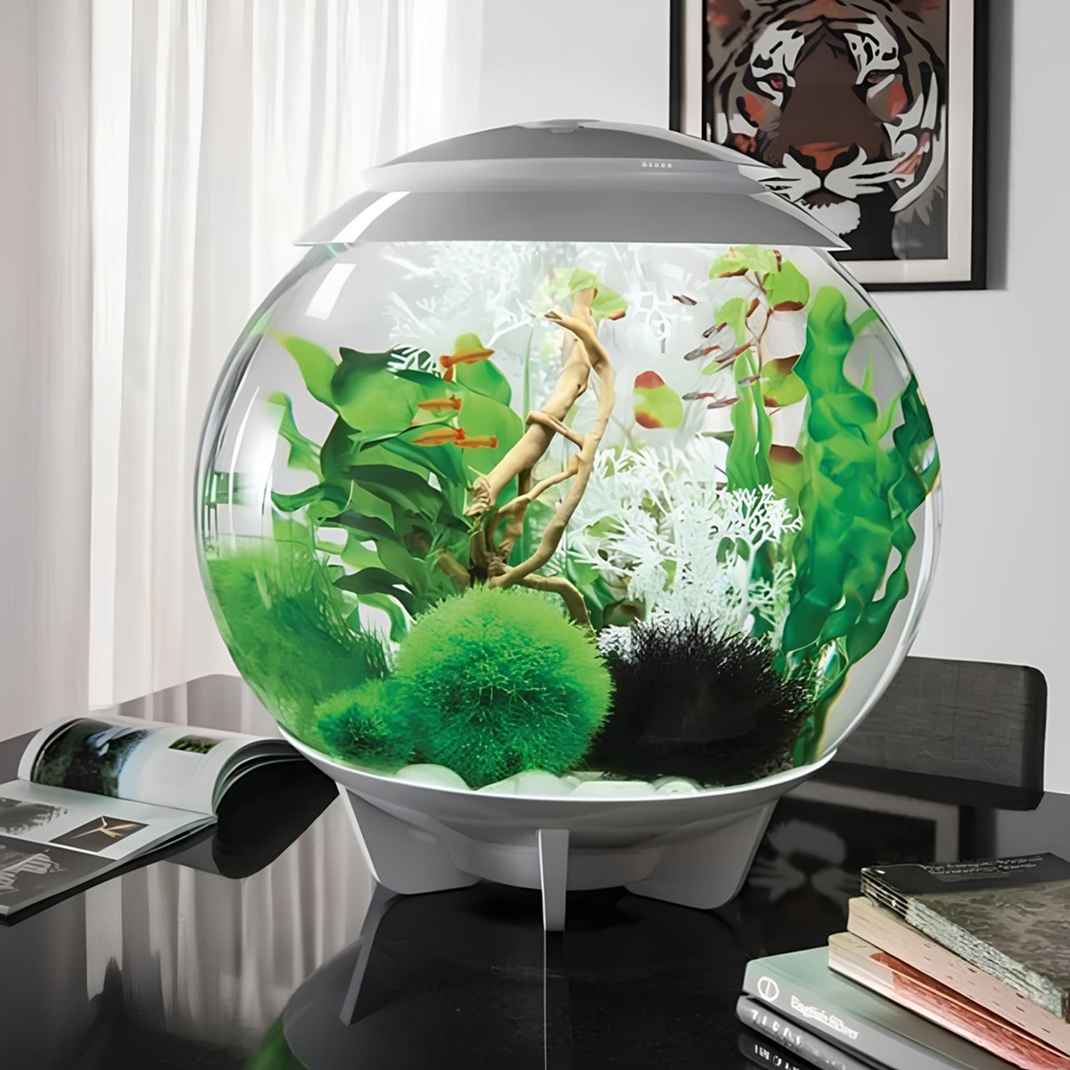 Серия biOrb HALO MCR это визуально бесшовные аквариумы сферической формы с цветной светодиодной подсветкой (16 цветов) и пультом дистанционного управления.