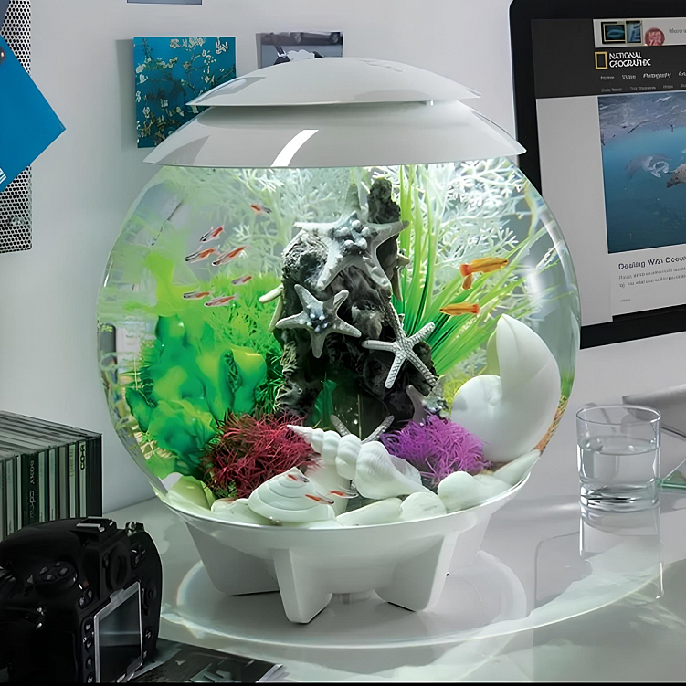 - Сферический аквариум со светодиодной подсветкой белого цвета