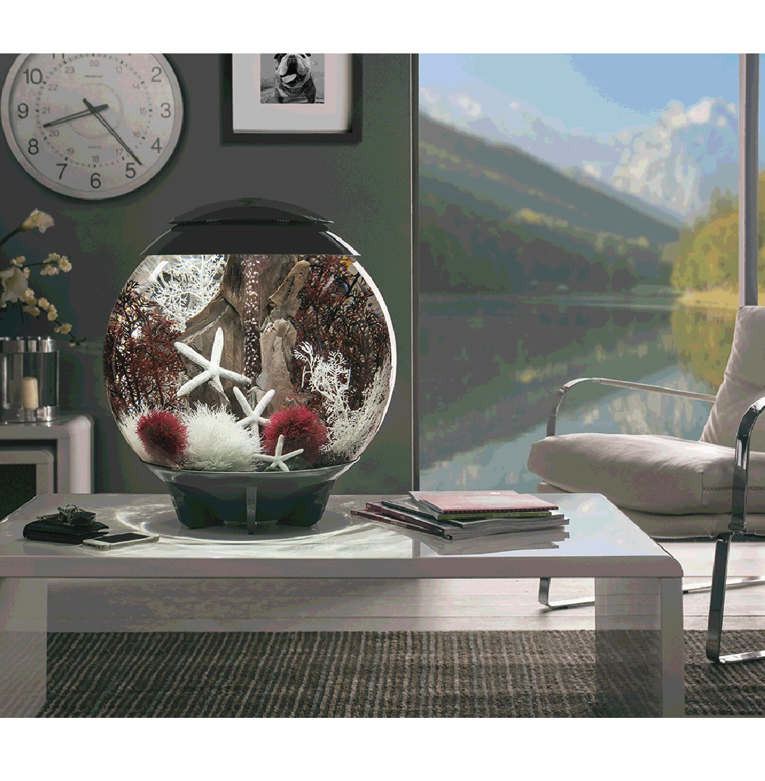 Серия biOrb HALO MCR это визуально бесшовные аквариумы сферической формы с цветной светодиодной подсветкой (16 цветов) и пультом дистанционного управления.