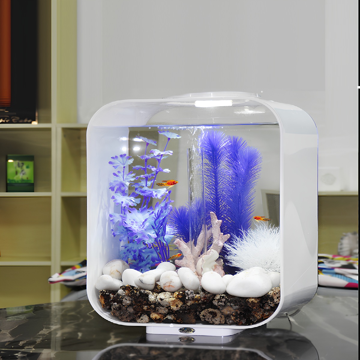 - Прямоугольный аквариум со сглаженными углами и со светодиодной цвето-меняющейся подсветкой