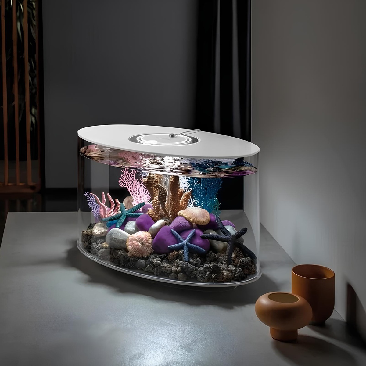 - Овальный аквариум со светодиодной цвето-меняющейся подсветкой