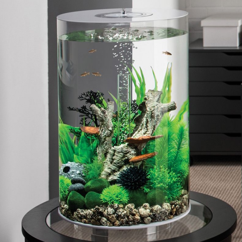 - Круглый аквариум со светодиодной подсветкой белого цвета
