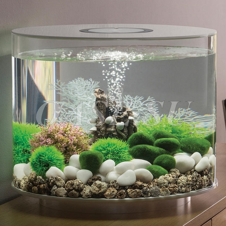 - Круглый аквариум со светодиодной подсветкой белого цвета