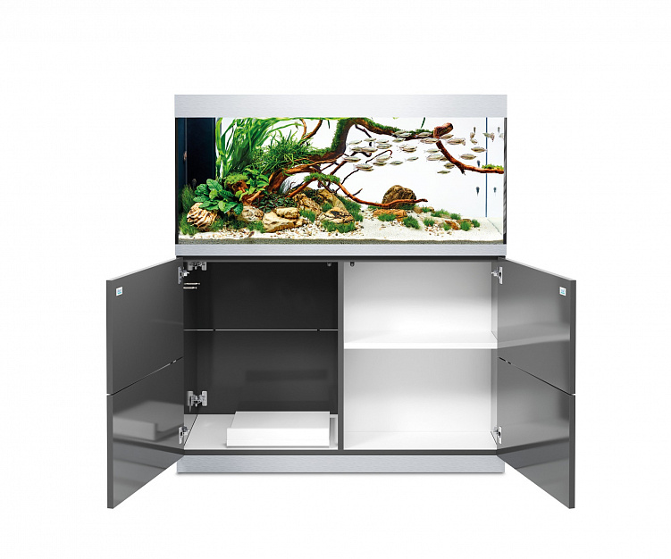 - Просторный шкаф может открываться с двух сторон и идеально дополняет аквариум