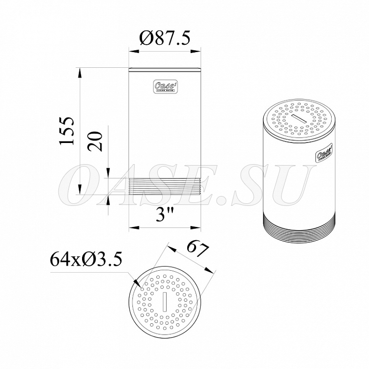 Отдельные струи (64 шт) создают одну полную струю диаметром 67 мм.