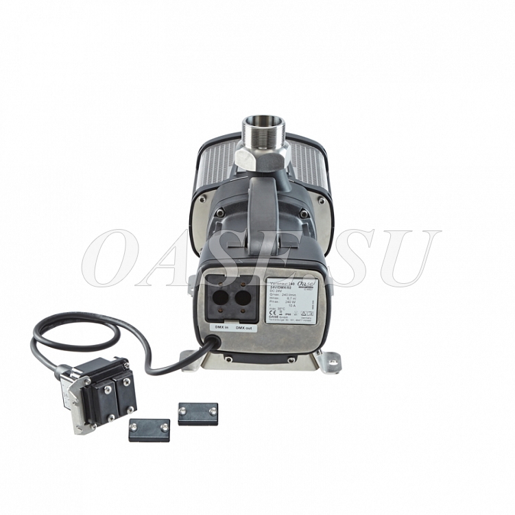 Varionaut 240 24 В / DMX / 02 - это самый мощный насос, совместимый с DMX / RDM, с технологией 24 В постоянного тока. Этот высокодинамичный, индивидуально регулируемый насос создает характеристики воды с точно воспроизводимой высотой фонтана. Максимальная высота фонтана 4,8 м достигается всего за 1 секунду с помощью Comet 15 - 15.