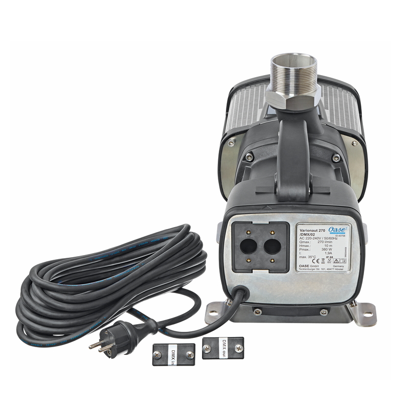 Высокодинамичный фонтанный насос Varionaut 270 /DMX/02 сокращает разрыв между существующими насосами Varionaut 150 и Varionaut 400. Этот энергоэффективный насос можно регулировать и управлять с помощью встроенного порта DMX / RDM. Таким образом, индивидуальные и динамические водные эффекты могут быть реализованы с точно повторяемой высотой фонтана