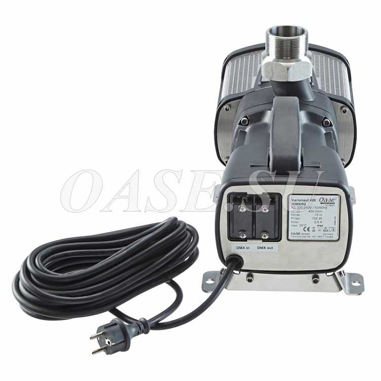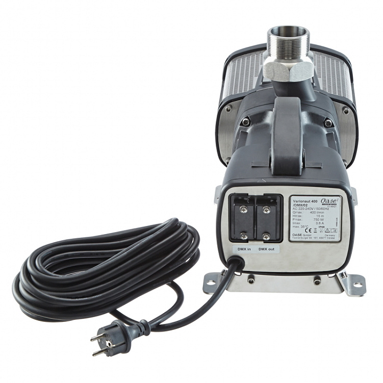 Varionaut 400 /DMX/02 - самый мощный насос, совместимый с DMX /RDM. Этот индивидуально регулируемый насос создает высокодинамичные характеристики воды с точно воспроизводимой высотой фонтана. Максимальная высота фонтана ок. 10 м достигается всего за 1,1 секунды с помощью Comet 15 - 15