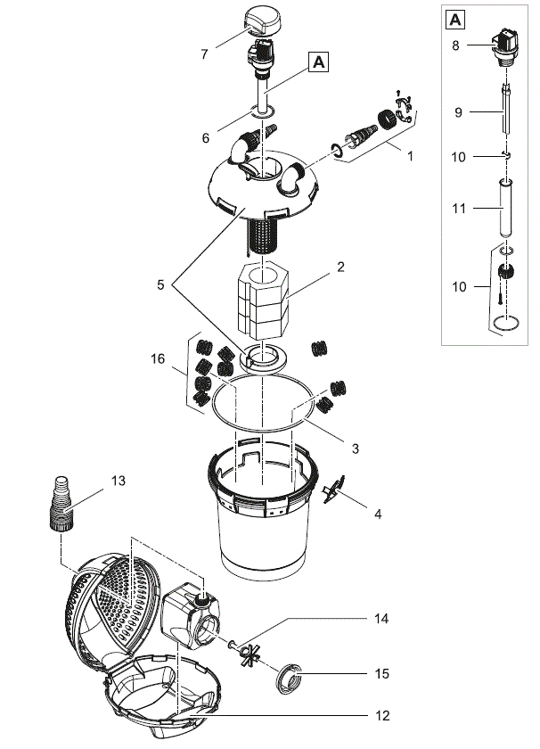 - Универсальный монтаж фильтра в прибрежной зоне - как выше, так и ниже уровня воды.