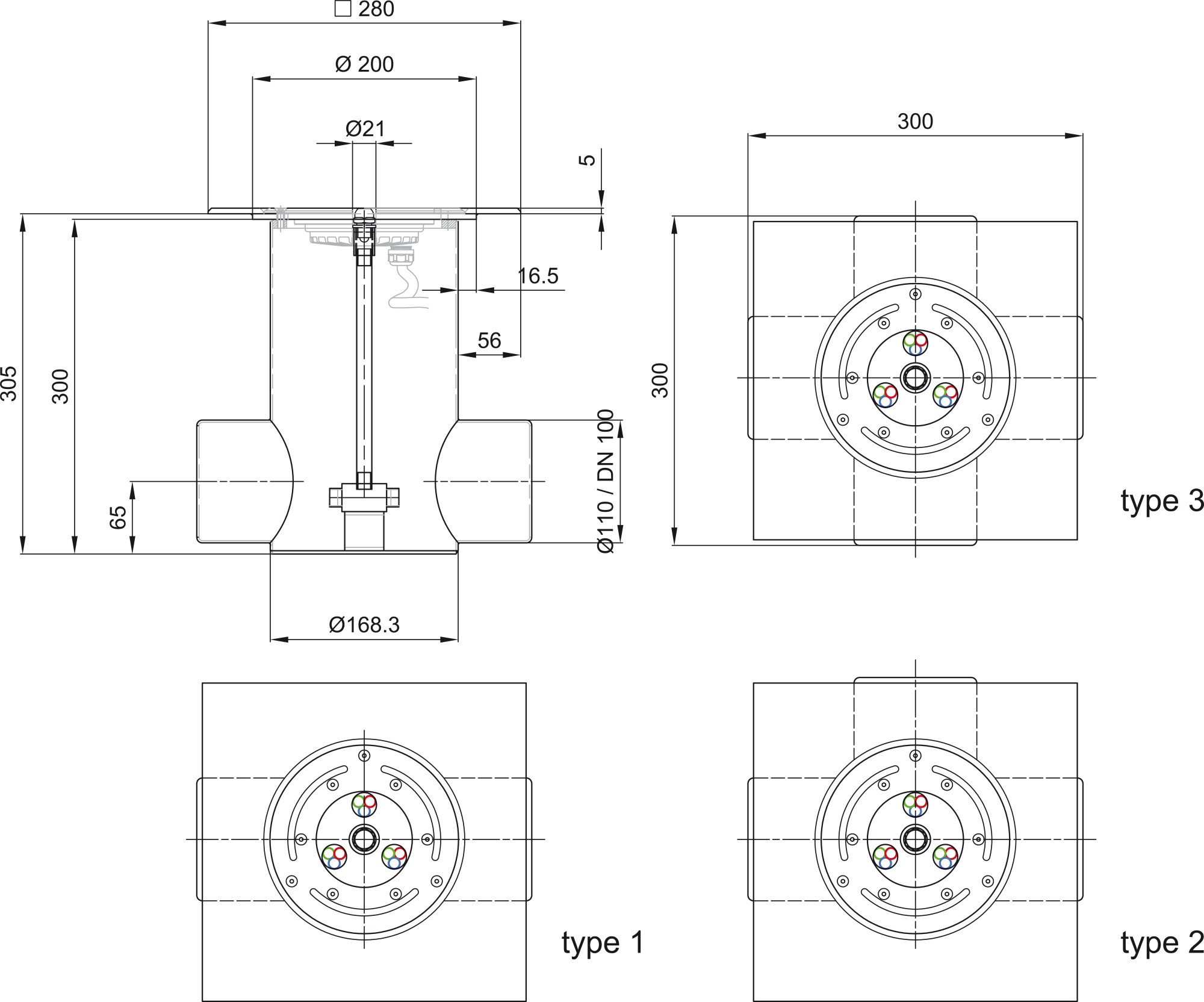 - Присоединение к камере DA110/DN110 (по запросу 2,3 или 4 шт.)