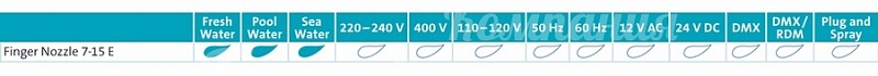 Фонтанная насадка Finger Nozzle 7-15 E генерирует семь отдельных водных струй диаметром 10мм.