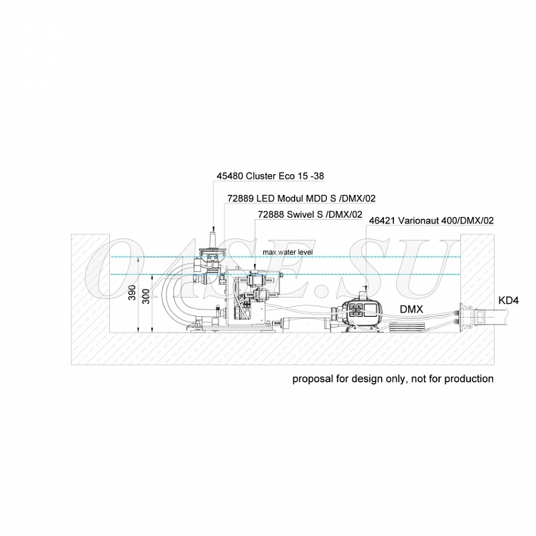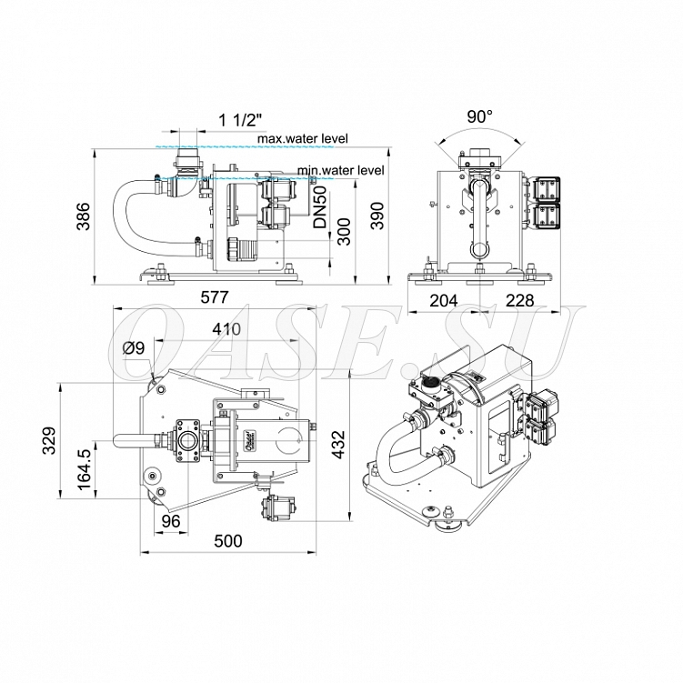 - Мин. Высота воды 300 мм, макс. высота воды 390 мм
