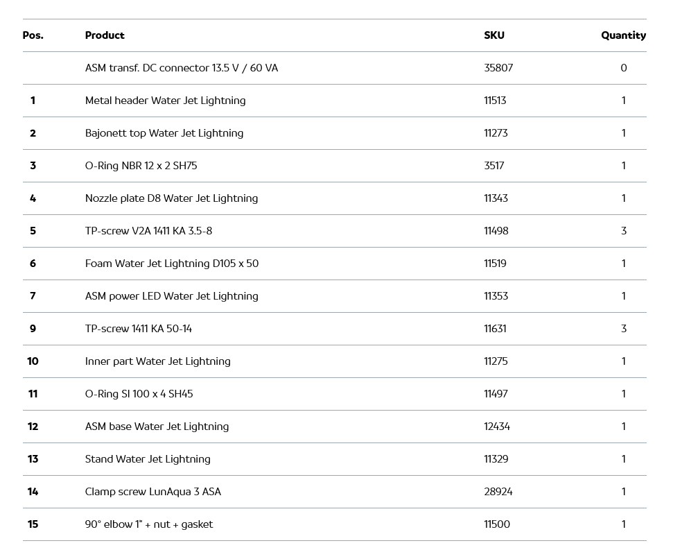 - В комплекте: установка из 2-х Water Jet Lightning, насос, внешний пульт управления, трансформатор и кабель.