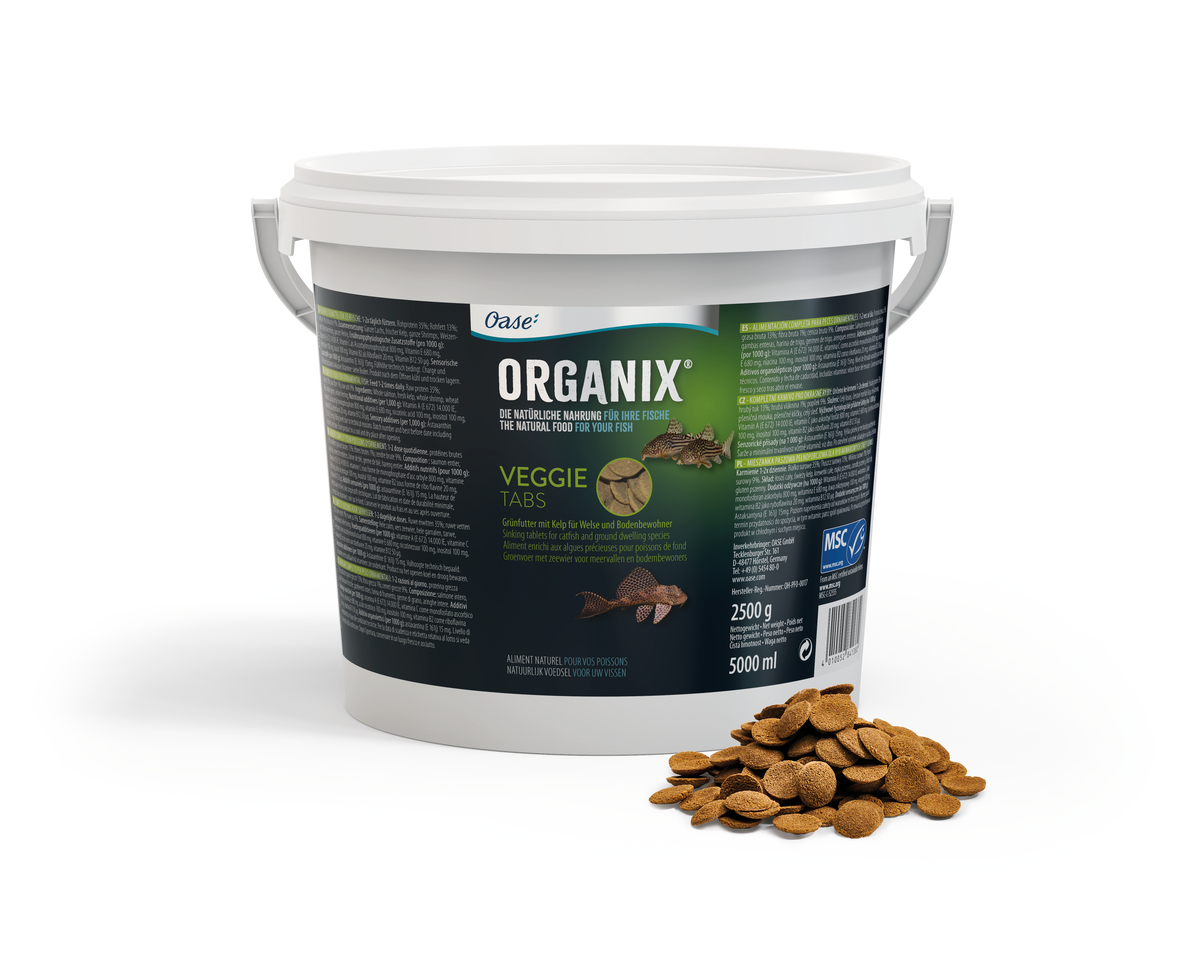 Полноценный корм для декоративных рыб: кормить 1-2 раза в день. Сырой белок 35%; сырой жир 13%; сырая клетчатка 1%; сырая зола 9%. Состав: цельный лосось, свежая ламинария, цельные креветки, пшеничная мука, зародыши пшеницы, цельная сельдь. Пищевые добавки (на 1000 г): Витамин А (Е 672) 14.000 т. е. витамин С в виде аскорбилмонофосфата 800 мг, Витамин Е 680 мг, никотиновая кислота 100 мг, инозит 100 мг, Витамин В2 в виде рибофлавина 20 мг, Витамин В12 50 мкг. Сенсорные добавки (на 1000 г): астаксантин (E 161j) 15 мг.