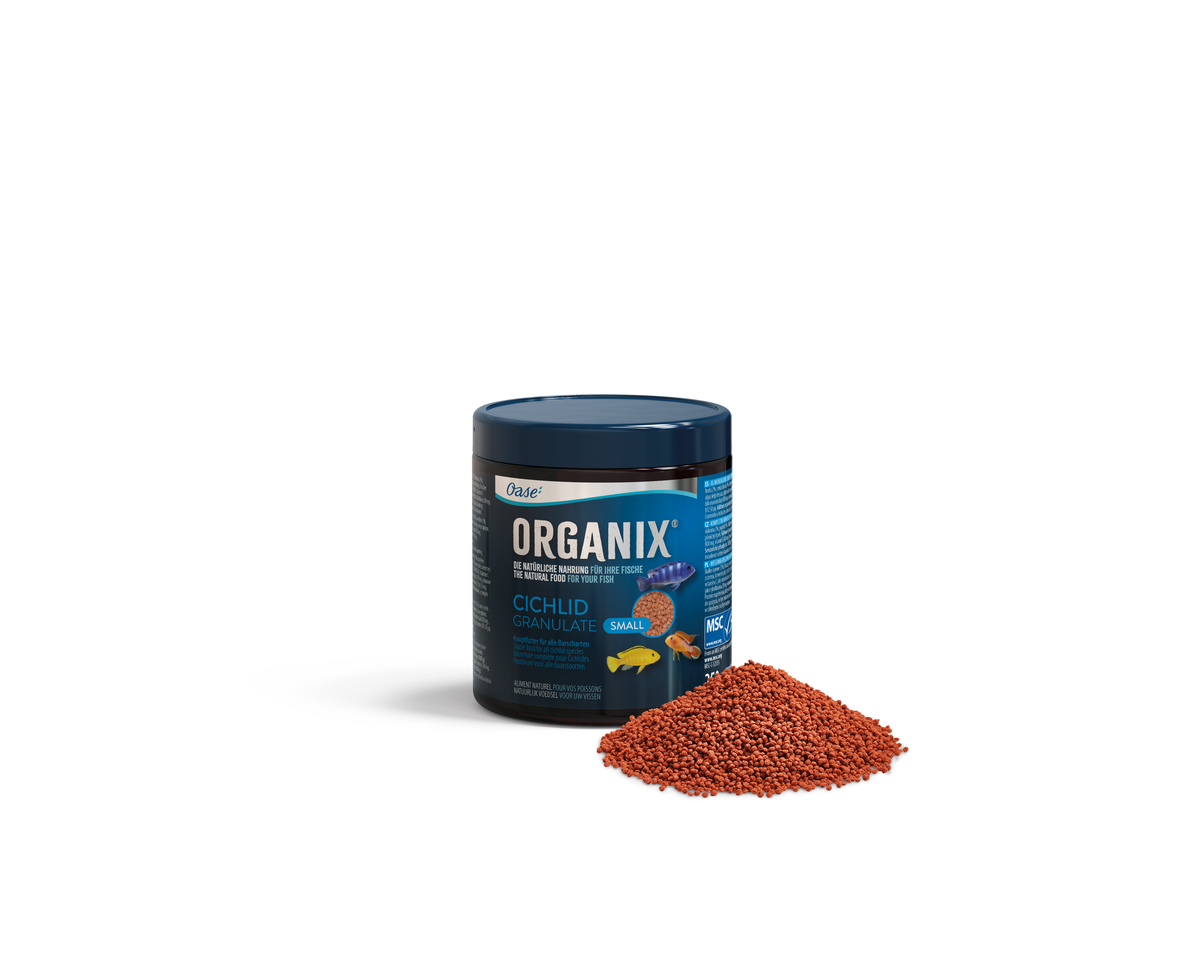 Полноценный корм для декоративных рыб: кормить 1-2 раза в день. Сырой белок 35%; сырой жир 12%; сырая клетчатка 2%; сырая зола 9%. Состав: цельный лосось, зародыши пшеницы, пшеничная мука, цельные креветки, цельная сельдь, свежие ламинарии, пшеничная клейковина. Пищевые добавки (на 1000 г): Витамин А (Е 672) 14.000 т. е. витамин С в виде аскорбилмонофосфата 800 мг, Витамин Е 680 мг, никотиновая кислота 100 мг, инозит 100 мг, Витамин В2 в виде рибофлавина 20 мг, Витамин В12 50 мкг. Сенсорные добавки (на 1000 г): астаксантин (E 161j) 15 мг.