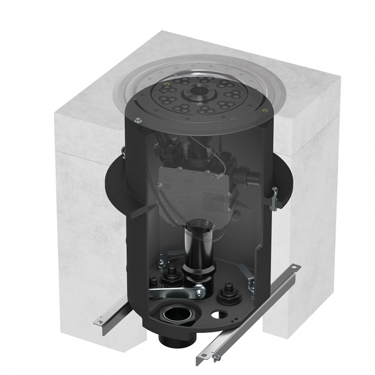 - Монтажная крышка служит уровнем для высоты поверхности фонтана и защищает подсоединенные трубы от загрязнения во время монтажа