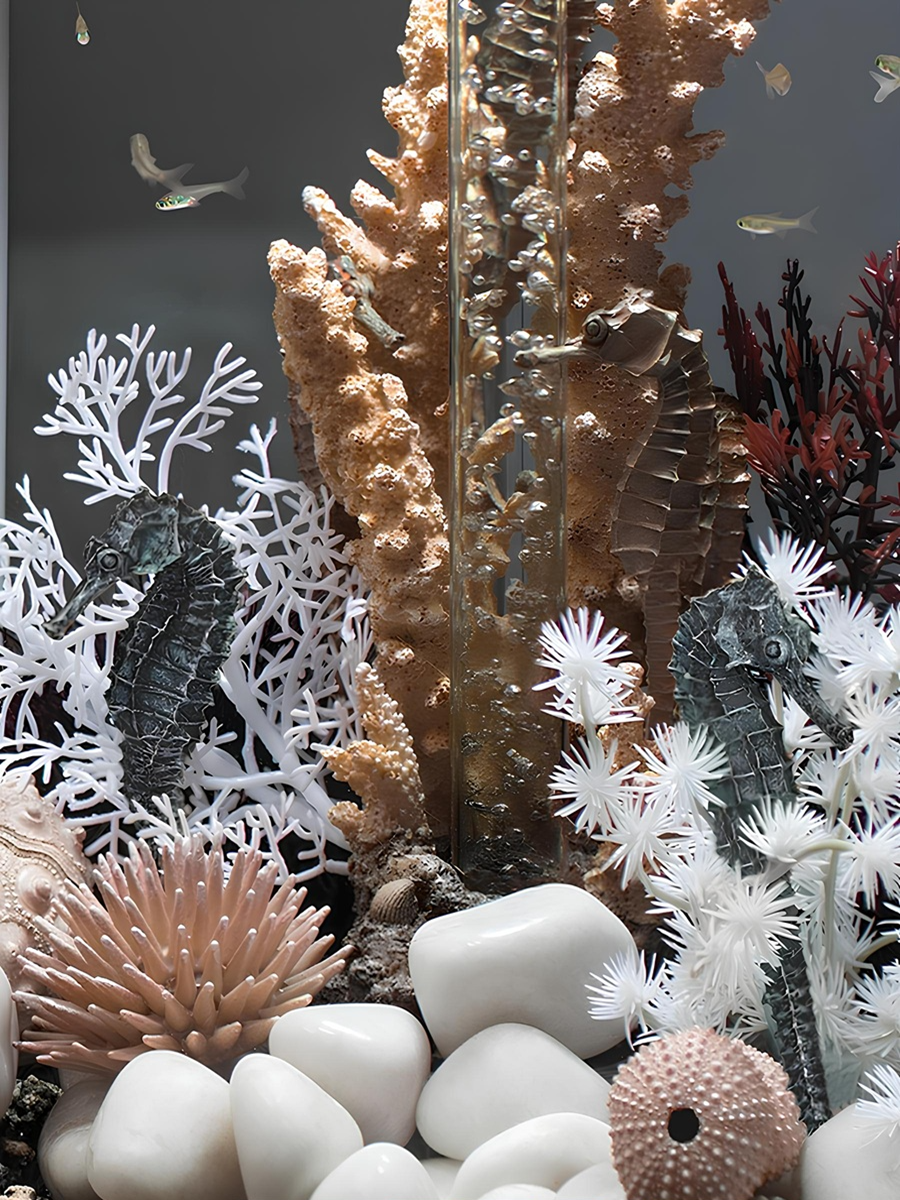 Набор элегантных украшений и яркий акцент, который придаст индивидуальности любому аквариуму.