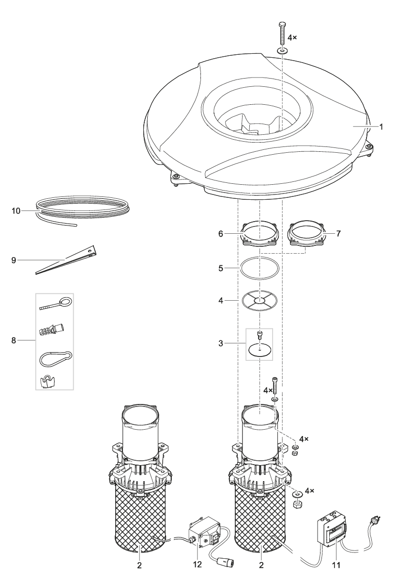 - Комплекты освещения с держателем из нержавеющей стали доступны в качестве аксессуара