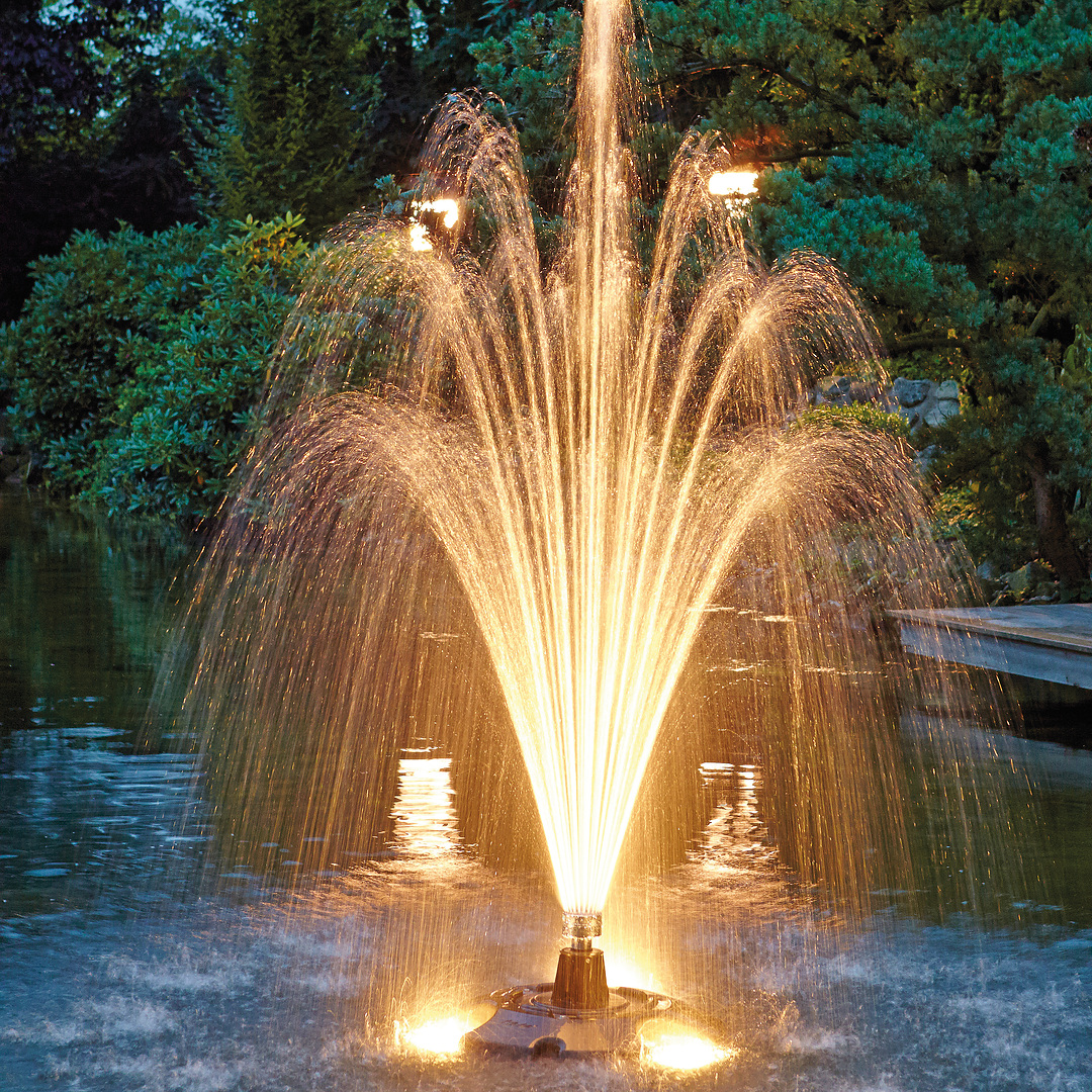 Плавающий фонтан Pond-Jet Eco для установки в водоемах любого типа , независимо от состоянии дна.