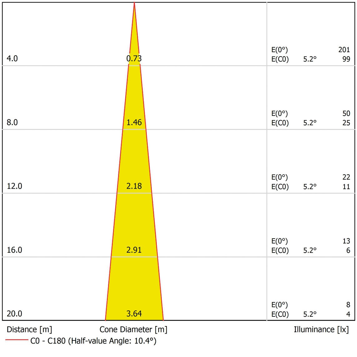 - 2 x 573 люмена с узким углом пучка 11°