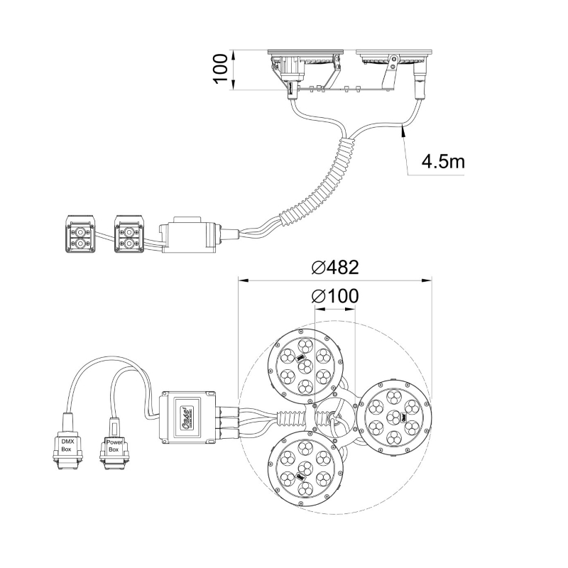 - 3 x энергоэффективных светодиодных RGBW-светильника с монтажным кронштейном, точной регулировкой и держателем для использования с разнонаправленным приводом XL 2D / 3D