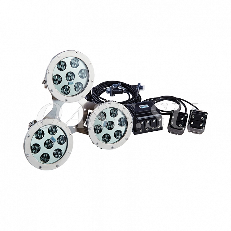 Светодиодный модуль предназначен для многонаправленного привода XL 2D /DMX/02 / Многонаправленного привода XL 3D /DMX/02. Этот модуль состоит из трех энергоэффективных светодиодных RGBW - ламп с углом луча 11 ° / 31 °, держателя и подводного светодиодного драйвера / DMX / 02.