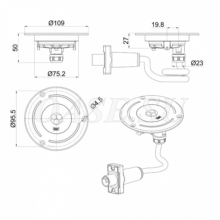 - Длина кабеля 1 м с запатентованными водонепроницаемым штекерным соединением
