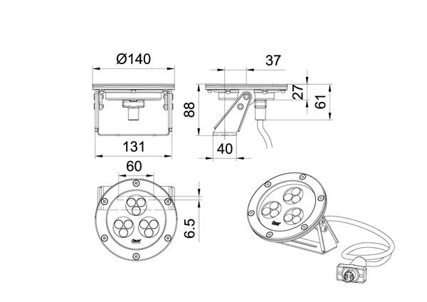 - DMX/RDM-управляемый с подводным выключателем 24 В постоянного тока (вкл / выкл)