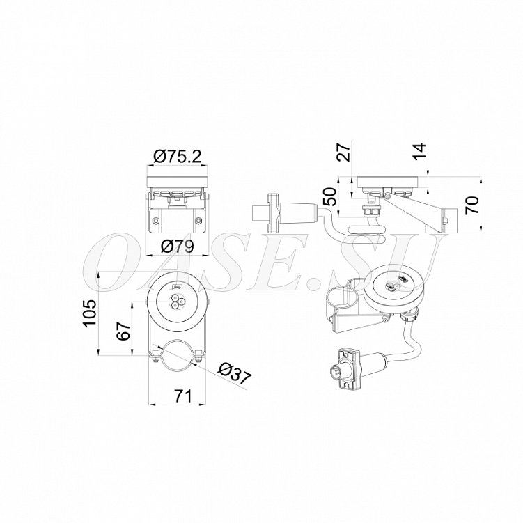 - Длина кабеля 1 м с запатентованными водонепроницаемыми штекерным соединением