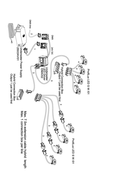 - DMX/RDM-управляемый с подводным выключателем 24 В постоянного тока (вкл / выкл)