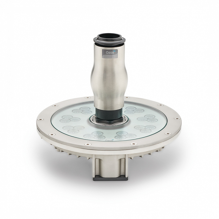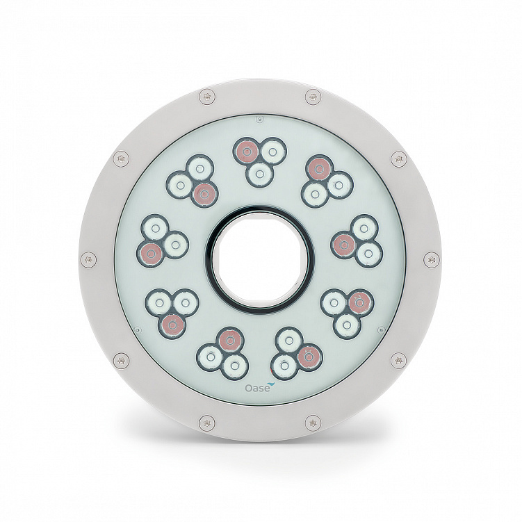 Энергоэффективная светодиодная подсветка RGB с отверстием в центре D = 51,6 мм для сменной входной резьбы 1 "или 1,5" (LED XL EasyFit 10 / LED XL EasyFit 15) для прямого монтажа насадки или для сменного входного отверстия для кластерной насадки (EasyFit Noz ) (заказываются отдельно).