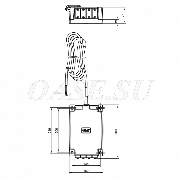 Трансформатор Underwater power supply 250/24V/01 представляет собой полностью закрытый источник питания. Устройства, подключенные к четырем слотам, не требуют подключения проводов и гарантируют безопасную и длительную работу под водой.