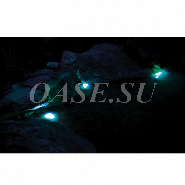 - Три эффектных светильника с трансформатором и пультом дистанционного управления MCR для создания неповторимой подсветки в пруду и саду