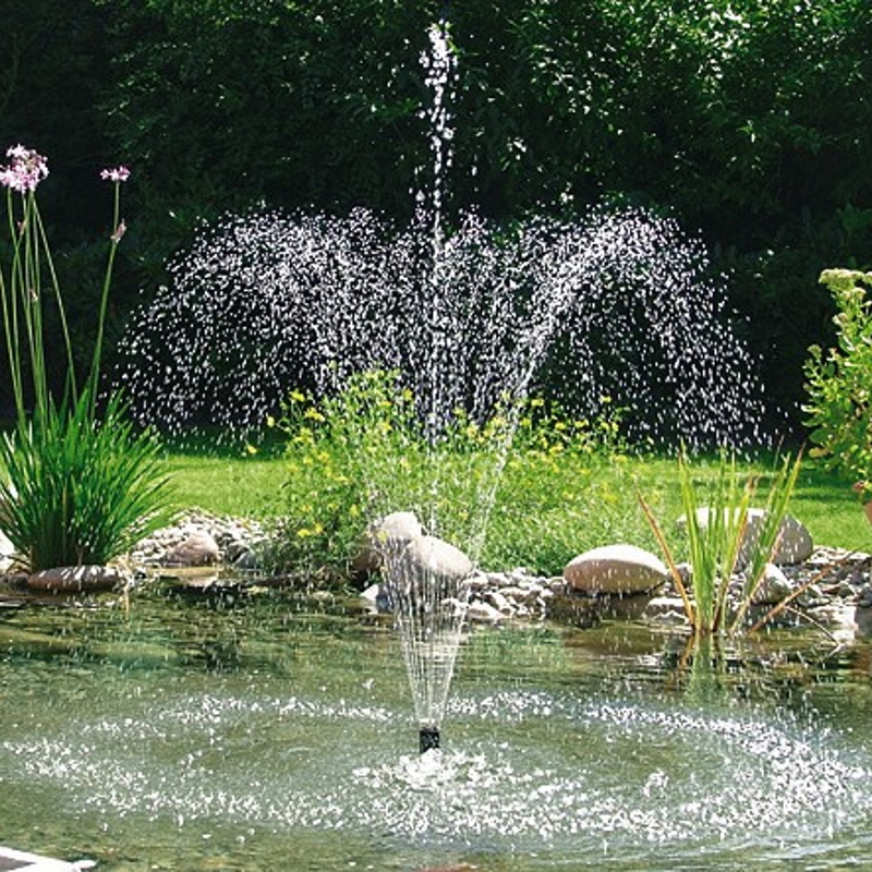 Фонтанный насос с четырьмя насадками в комплекте для использования в садовых прудах, декоративных фонтанах и небольших ручьях.