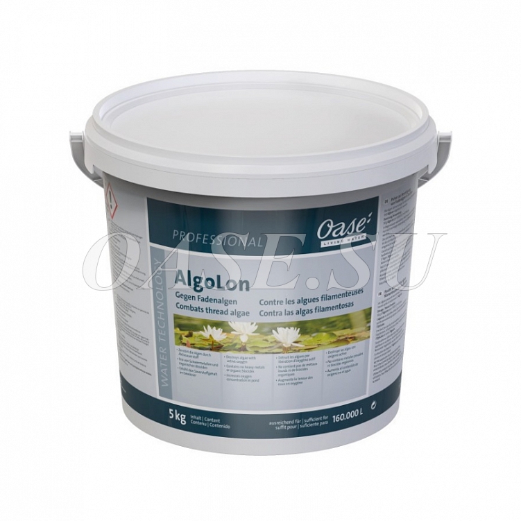 Нитевидные водоросли редко могут быть окончательно удалены механическим способом. AlgoLon, где в качестве действующего вещества используется активный кислород, предлагает решение: он немедленно запускает процессы окисления, которые разлагают клеточную структуру нитевидных водорослей. AlgoLon не содержит тяжелых металлов или органических биоцидов и не создает новых организмов; препарат полностью растворяется в воде. Мертвые водоросли можно выловить из воды всего через несколько часов.