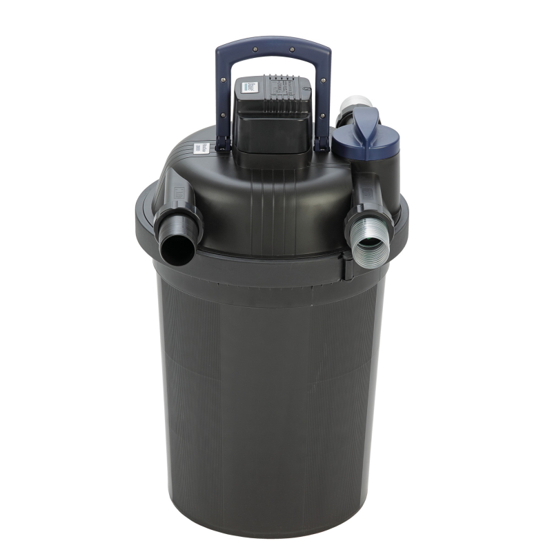Напорный фильтр сочетающий в себе механическую и биологическую очистку, а также эффективную УФ лампу, с запатентованной и очень удобной технологией очистки самого фильтра.
