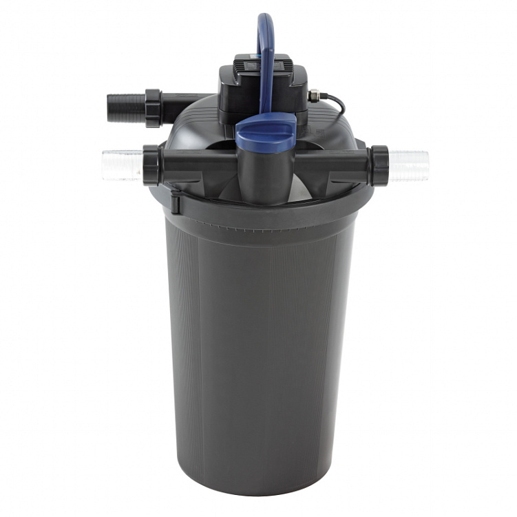 Напорный фильтр сочетающий в себе механическую и биологическую очистку, а также эффективную УФ лампу, с запатентованной и очень удобной технологией очистки самого фильтра.