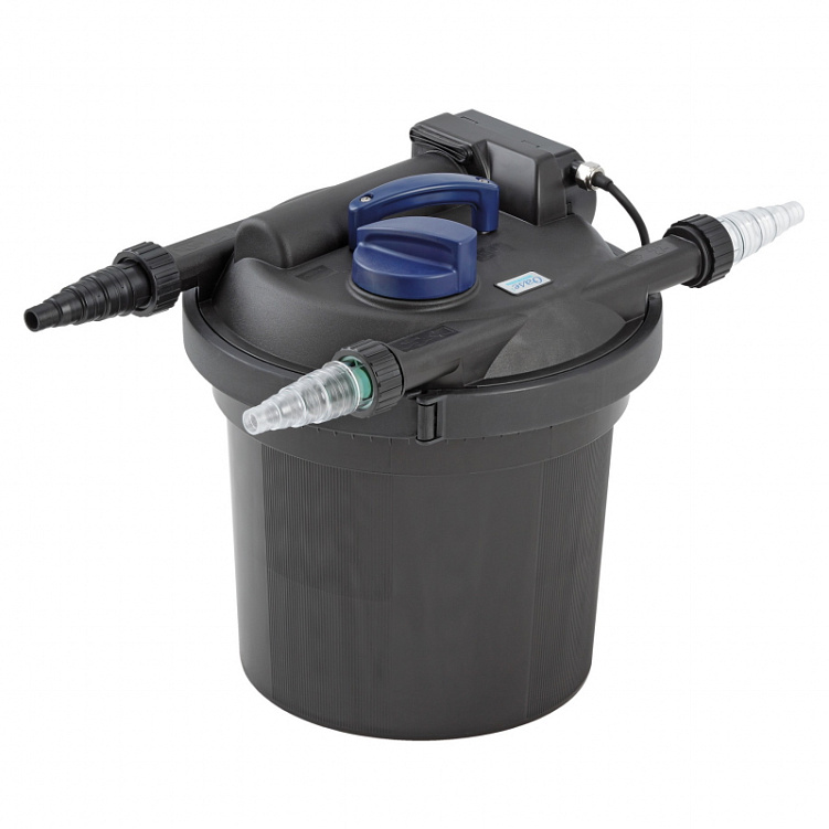 Напорный фильтр сочетающий в себе механическую и биологическую очистку, а также эффективную УФ лампу, с запатентованной и очень удобной технологией очистки самого фильтра.