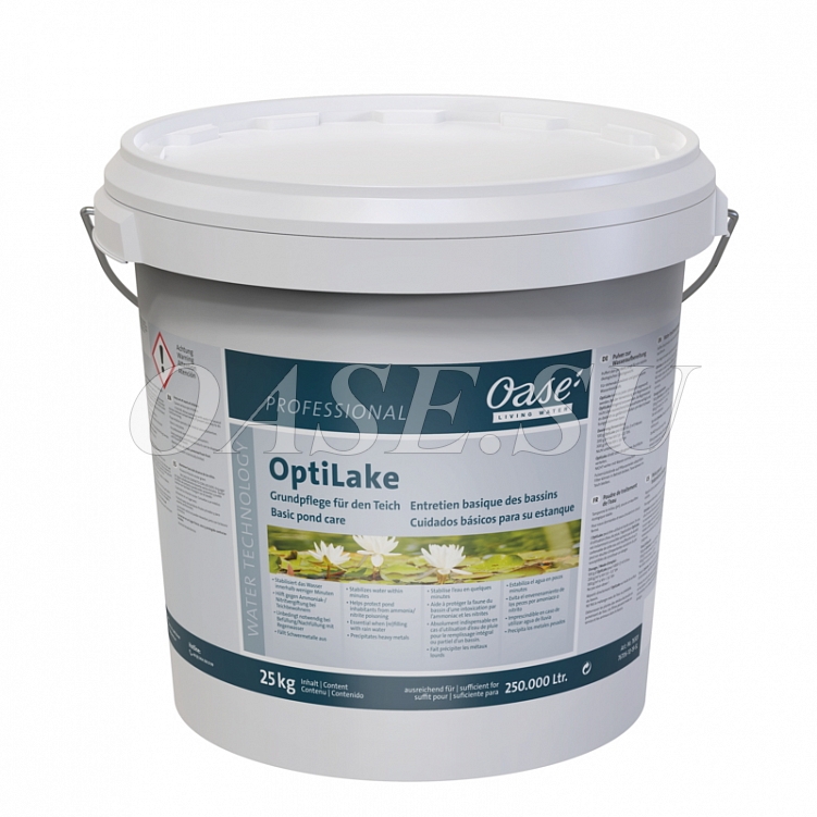 Многие проблемы с водой вызваны колебаниями уровня воды. Поэтому имеет смысл надежно стабилизировать значение pH и KH перед началом лечения. OptiLake использует необходимый кальций и диоксид углерода для получения значения рН от 7,5 до 8,3, которое затем поддерживается на стабильном уровне с помощью этой буферной системы. Это создает оптимальные условия для растений и животных и гарантирует, что биология в пруду может немедленно начать регенерировать, поскольку это решение способствует росту и размножению микроорганизмов, которые питаются водорослями и выделяют токсины. OptiLake также связывает тяжелые металлы и немедленно начинает лечение отравления аммиаком.