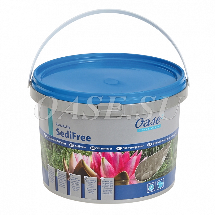 SediFree содержит высокоэффективные бактерии для преобразования органических донных отложений. Двухкомпонентная система содержит гранулы с активным кислородом, который ускоряет разложение ила и предотвращает его накопление, а также борется с длительным помутнением. Гранулы, содержащие активный кислород, погружаются глубоко в слой ила и окисляют его. Затем микроорганизмы перерабатывают органический материал. Наиболее благоприятные для этого условия - температура воды должна быть 12 °C и выше.