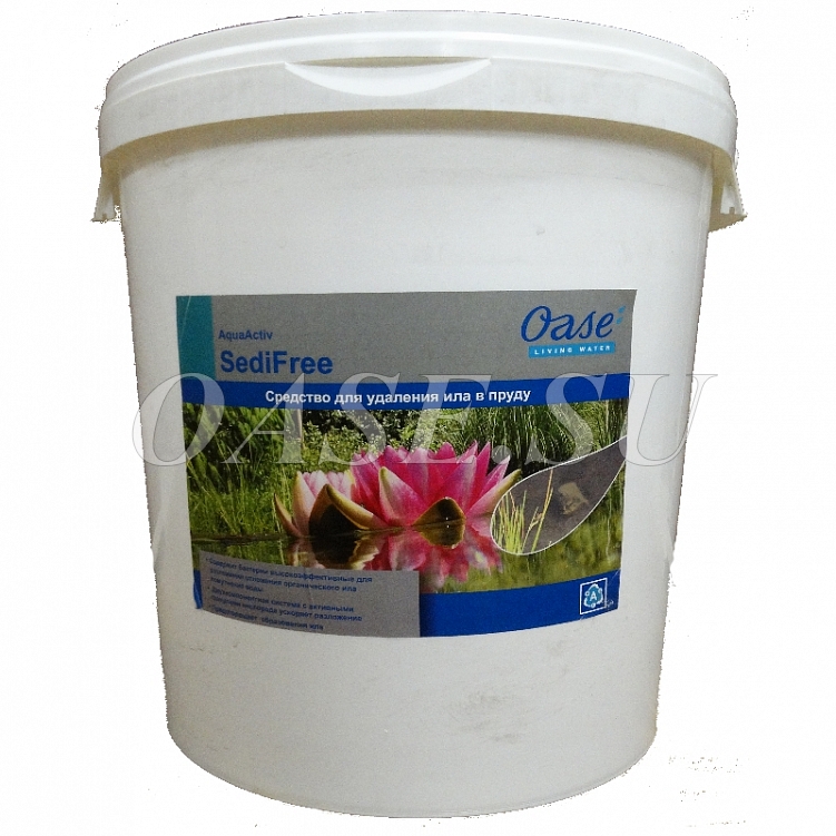 SediFree содержит высокоэффективные бактерии для преобразования органических донных отложений. Двухкомпонентная система содержит гранулы с активным кислородом, который ускоряет разложение ила и предотвращает его накопление, а также борется с длительным помутнением. Гранулы, содержащие активный кислород, погружаются глубоко в слой ила и окисляют его. Затем микроорганизмы перерабатывают органический материал. Наиболее благоприятные для этого условия - температура воды должна быть 12 °C и выше.