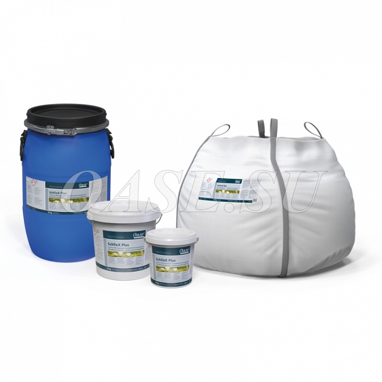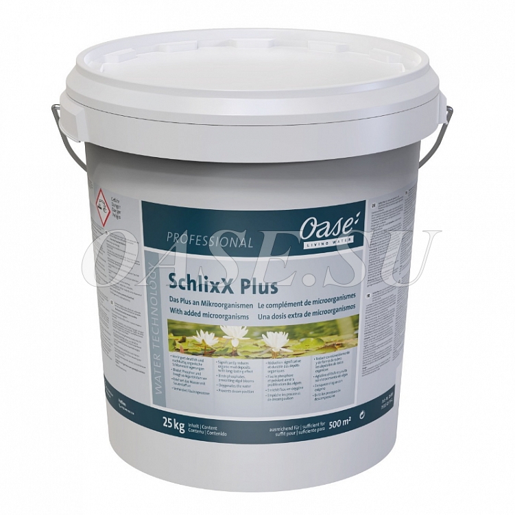 - SchlixX Plus борется исключительно с органическим осадком. Другими словами, осадок или песок, попадающие в воду через притоки, не удаляются SchlixX Plus.