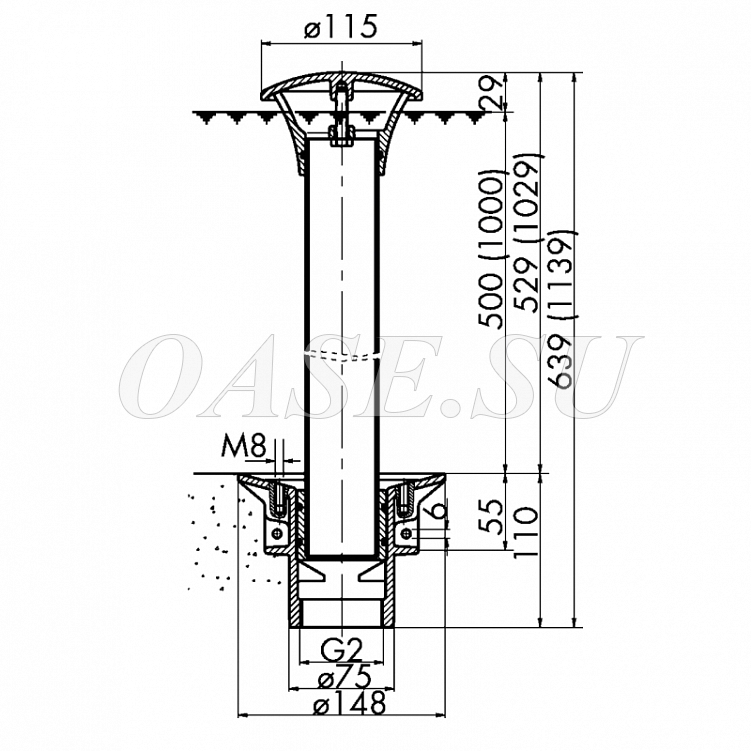 Универсальная арматура перелива Overflow/drain armature 70/1000 T